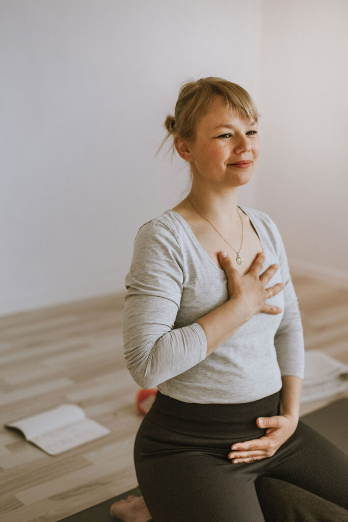 Forløbet starter meget blødt op, sådan at du får chancen for virkelig at mærke efter hvad din krop har brug for. Der bliver lagt stor vægt på hvordan du trækker vejret, således at dit mellemgulv kan fungere optimalt. Dette gøres i forbindelse med forskellige åndedrætsøvelser, der understøtter afspænding. Bækkenbunden er i fokus og du vil lære måder, hvorpå du kan træne den til at blive stærkere, eller slappe mere af i den, skulle den være overspændt.